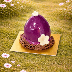 Striking to look at. Even better to eat. The Red Velvet Nest layers a classic red velvet sponge with smooth vanilla cream and a rich blackcurrant chocolate ganache that adds depth and a subtle sharpness. The showstopper of the collection. The one people photograph before they eat.